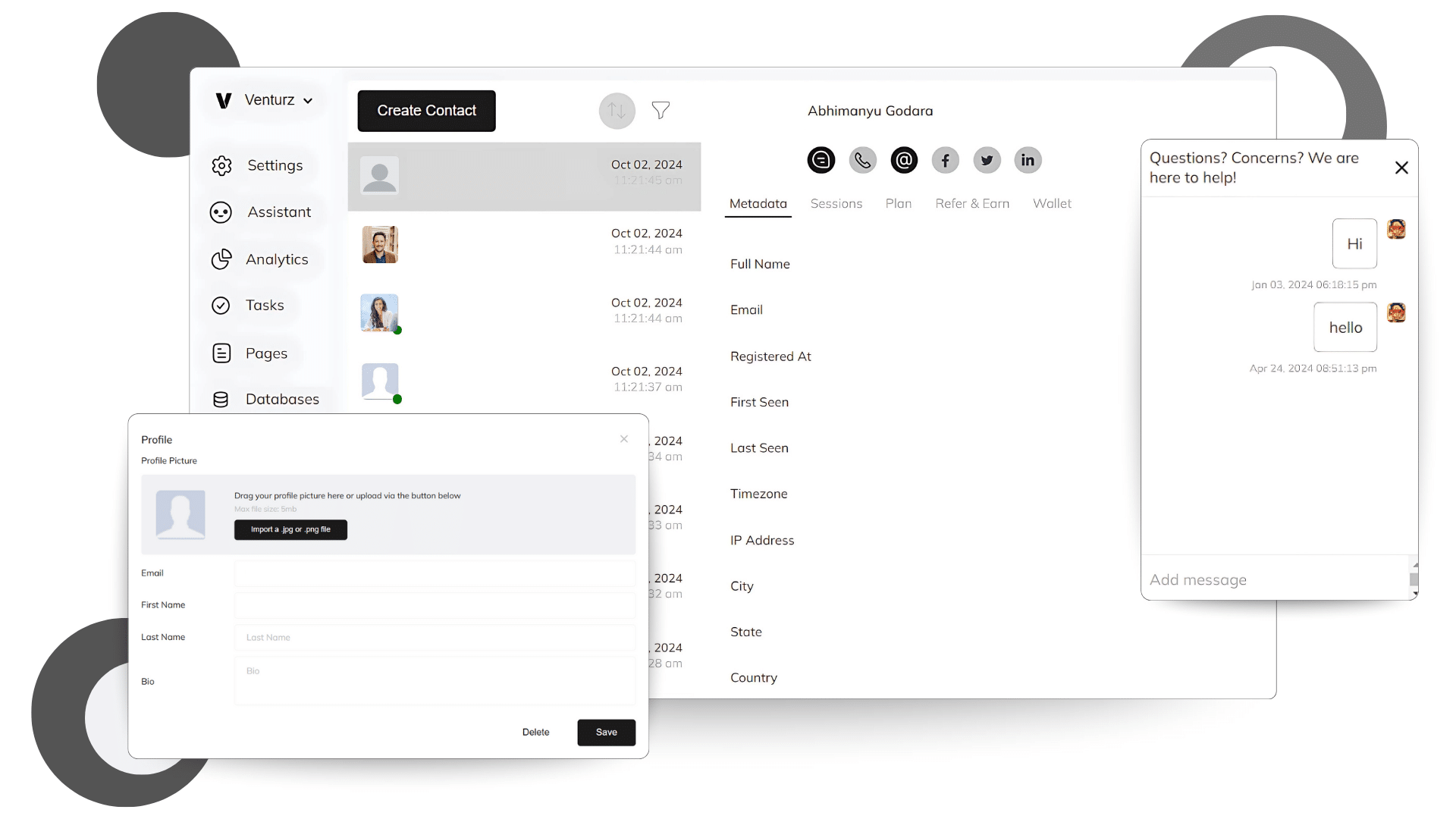 - AI Assistant: From content creation to data analysis, Venturz gives you a virtual sidekick to move faster.