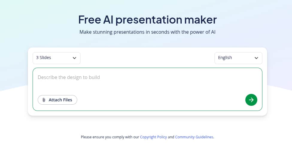 This tool is a great option if you want to transform your ideas, notes, or rough content into well-structured presentations in minutes. Instead of manually organizing slides, you can generate a complete presentation with a logical flow, making it easier to communicate your message clearly. It’s especially useful for professionals who need to create polished presentations quickly without spending too much time on formatting and structure.