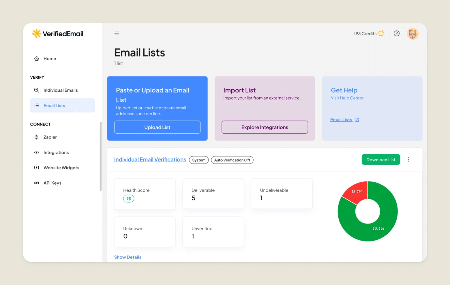 Purpose: VerifiedEmail helps SaaS teams keep their email lists clean and ensure their automated workflows actually reach real people. While it’s not a marketing automation tool, it plays a critical role in automation efficiency by preventing bounces, protecting sender reputation, and making sure every trigger-based email lands in a valid inbox. Its real-time and bulk verification engine checks syntax, domain health, MX records, and mailbox status before an email is ever sent.