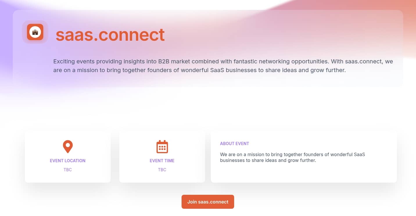 Focused on meaningful peer-to-peer networking, saas.connect brings together SaaS founders and leaders who prioritize sustainable growth, profitability, and long-term value over short-term wins.